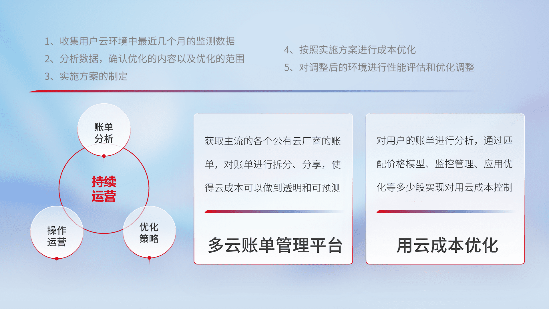 监控业务系统资源开销,,,对资源的消耗精确计量,,,实现费用的透明化管理,,不断提升资源使用率,,调整资源购买方式,,,降低资源费用成本,,,用云成本可预测、、用云费用可优化,,,云资源配额有据可依。。。